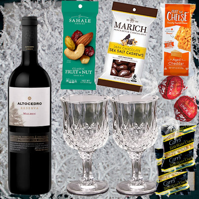 Make your next occasion truly special with this beautifully presented gift pack featuring Altocedro Grean Reserva Malbec Gift Pack. Each gourmet gift pack is handmade to order and elegantly wrapped on top. A gourmet gift pack is an easy way to send an impressive gift featuring their favorite bottle of Wine. Our gift pack make the perfect gift for any birthday, anniversary, holiday or sympathy gift.